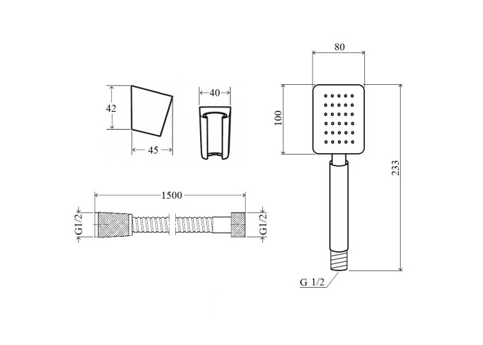 Додаткові характеристики Харчова нержавіюча сталь AISI 304. Лійка (ВхШ) 230х80 мм, Кількість форсунок 30 шт. Довжина душового шланга -1500 мм.