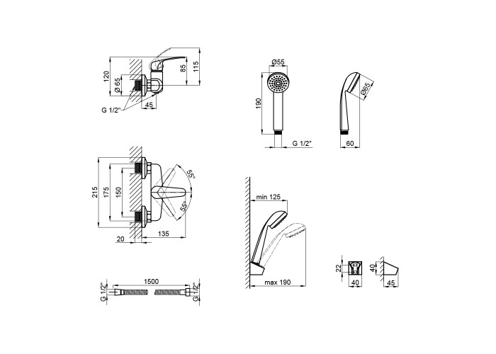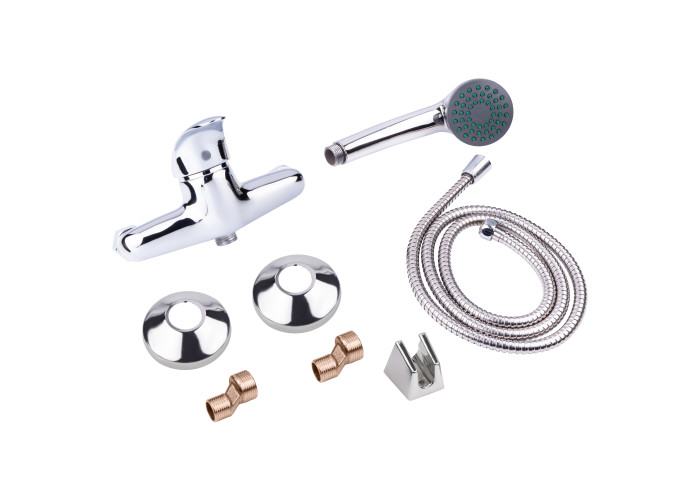 Змішувач, лійка для ручного душу, душовий шланг, тримач для ручного душу, кріплення.