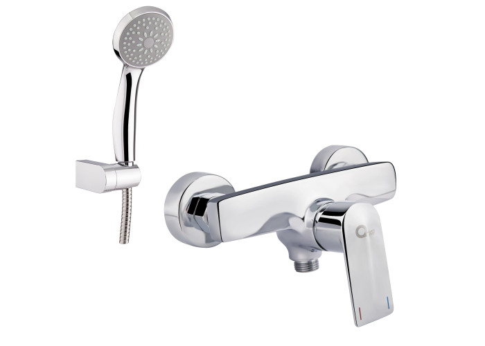 Змішувач, лійка для ручного душу, душовий шланг, кронштейн, кріпильні деталі.