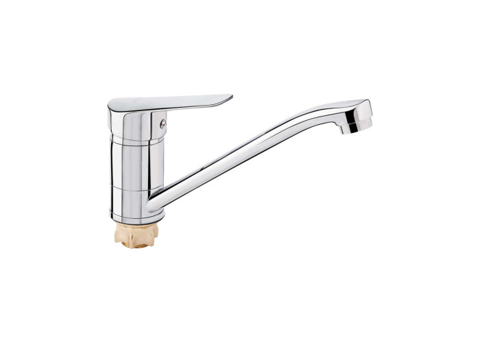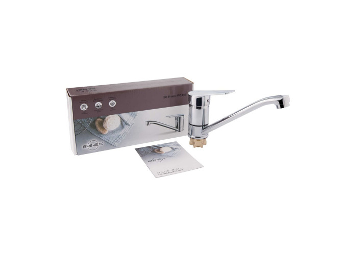 Змішувач для кухонної мийки Brinex 41C 003 виготовлений із металу. Має одноважільне управління, яке регулює натиск холодної та гарячої води. Виконаний в сучасному, стриманому дизайні з глянсовою хромованою поверхнею. Такий змішувач можна назвати універсальним, бо він буде ідеально виглядати в будь-якому інтер‘єрі кухні.