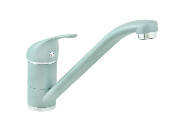 Представлений тут настільний, одноважільний, кухонний змішувач AG 9007 серії Ambra від Emmevi зроблений із високоякісної латуні з покриттям світлосірого і хромового кольорів, має довжину поворотного виливу 22.5 см, обладнується керамічним картриджем. Модель встановлюється на один отвір використовуючи гнучкі шланги для підведення води М10*1/2″.