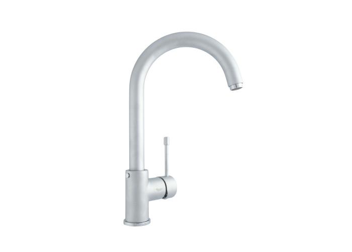 Кухонний змішувач торгової марки Emmevi колекції Eden з дугоподібним зливом оснащений картриджем з керамічними пластинами під один важіль змішування і регулювання холодної – гарячої води. Одноважільний змішувач Eden оптимальний варіант для кухни, ним легко і зручно керувати однією рукою. Має високий, дугоподібний, поворотний вилив з великим радіусом дії збільшуючи робочий простір, що допомагає керувати водяний струменем і дозволяє його використовувати для мийок як з однією, так і двома чашами. Корпус змішувача виготовлений з екологічно чистого матеріалу (латунь) з декоративним покриттям в кольорі: мат / хром.