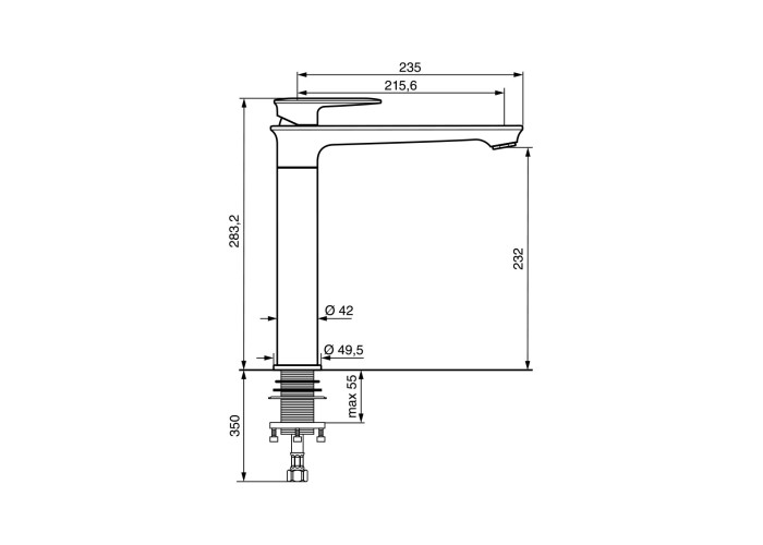 Представлений тут настільний, одноважільний кухонний змішувач Kiry CN88008 від Emmevi, виготовлений з високоякісної латуні з керамічним картриджем і покриттям кольору чорний глянець, має стаціонарний вилив з виносом 23.5 см. Модель встановлюється на один отвір використовуючи гнучкі шланги для підведення води М10*1/2″.