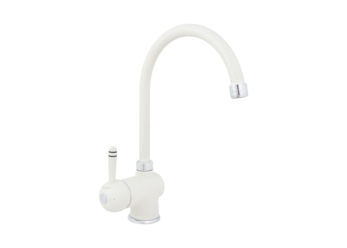Представлений тут настільний, одноважільний, кухонний змішувач VP4074 серії Laguna від Emmevi вироблений із високоякісної латуні з покриттям кольору кава з молоком, виніс поворотного виливу складає 20 см. Модель встановлюється на один отвір використовуючи гнучкі шланги для підведення води М10*1/2″.