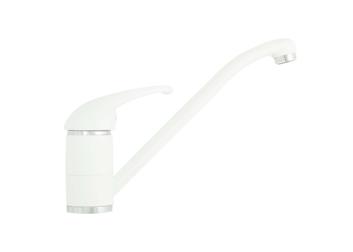 Представлений тут настільний, одноважільний, кухонний змішувач BIO 7007 серії Luxor від Emmevi зроблений із високоякісної латуні з покриттям матового білого і хромового кольорів, має довжину поворотного виливу 21.5 см, обладнується керамічним картриджем і постачається без шлангів підключення (купуються окремо).