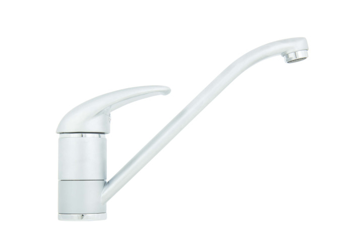 Представлений тут настільний, одноважільний, кухонний змішувач SC7007R серії Luxor від Emmevi зроблений із високоякісної латуні з покриттям кольору матового хрому, має довжину поворотного виливу 21.5 см, обладнується керамічним картриджем. Модель встановлюється на один отвір використовуючи гнучкі шланги для підведення води М10*1/2″.