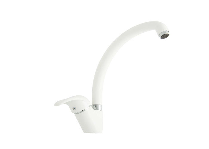 Представлений тут настільний, одноважільний, кухонний змішувач ВІО 7087 R серії Luxor від Emmevi зроблений із високоякісної латуні з покриттям матового білого і хромового кольору, має довжину поворотного виливу 20 см, обладнується керамічним картриджем і постачається без шлангів підключення (купуються окремо).