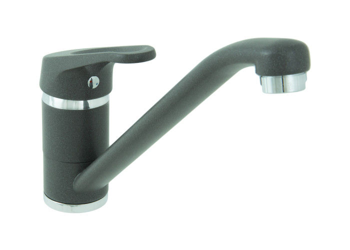 Представлений тут настільний, одноважільний, кухонний змішувач GMAR 3007 серії Maya від Emmevi вироблений із високоякісної латуні з покриттям мишиного і хромового кольорів, виніс поворотного виливу складає 22.5 см. Модель встановлюється на один отвір використовуючи гнучкі шланги для підведення води М10*1/2″.
