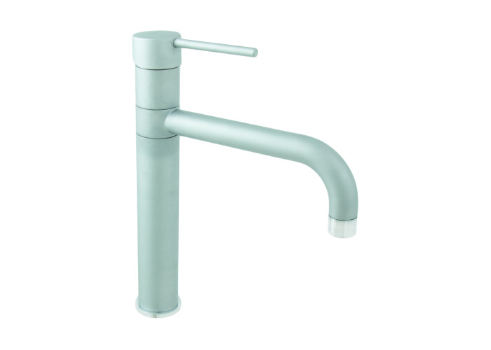 Представлений тут настільний, одноважільний кухонний змішувач Piper SC45007 від Emmevi, виготовлений з високоякісної латуні з керамічним картриджем і покриттям кольору матового хрому, має поворотний вилив з виносом 20 см. Модель встановлюється на один отвір використовуючи гнучкі шланги для підведення води.