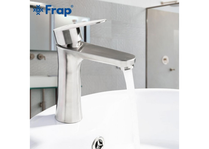 Нержавіюча сталь корпусу змішувача Frap F1048 робить його довговічним, сплав, що не окислюється під дією вологи і вогкості. Важіль дозволяє виробляти температури і напору струменя однією рукою.