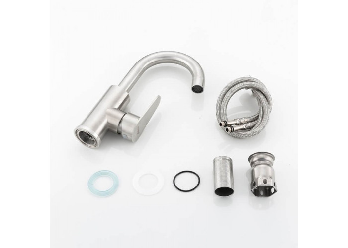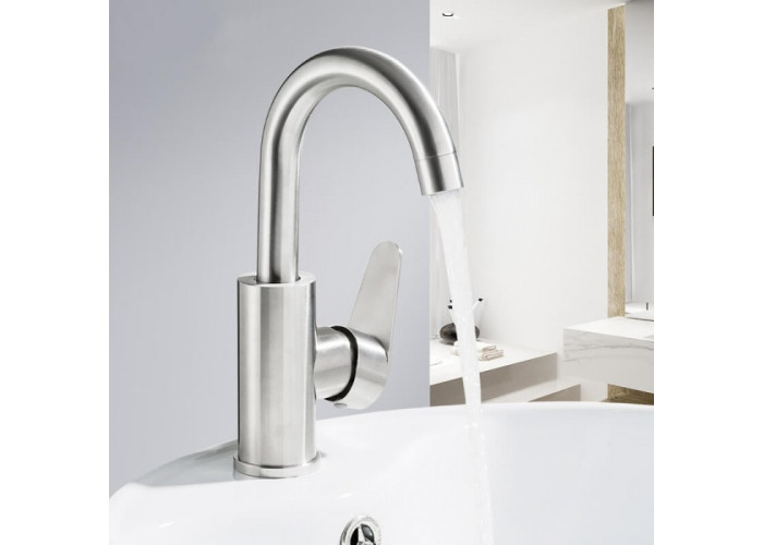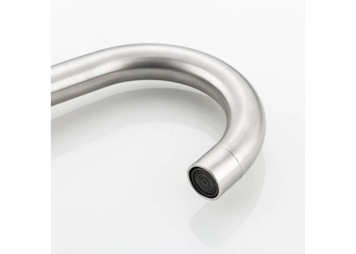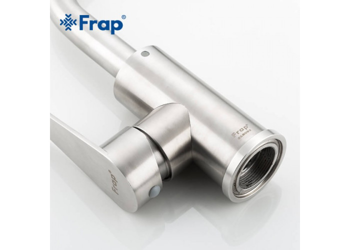 Змішувач для кухні Frap F1348 з нержавіючої сталі відрізняється високою ергономікою. Він має високий поворотний гусак, тому може встановлюватися на мийки з двома раковинами. Особливо він добре підходить для глибоких чаш.