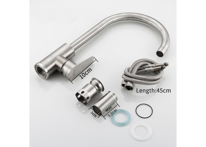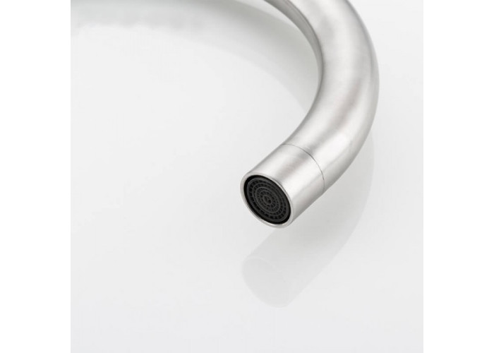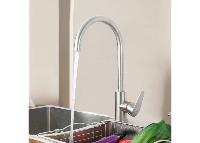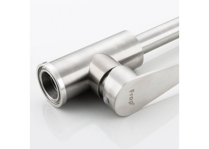 Змішувач для кухні Frap F4048 не вимагає декоративного та захисного покриття, оскільки виробляється з нержавіючої сталі. Даний сплав на основі стали має підвищену стійкість до руйнування під дією вологи і вогкості, простий у догляді.