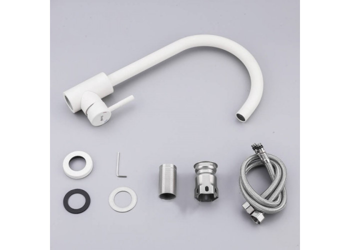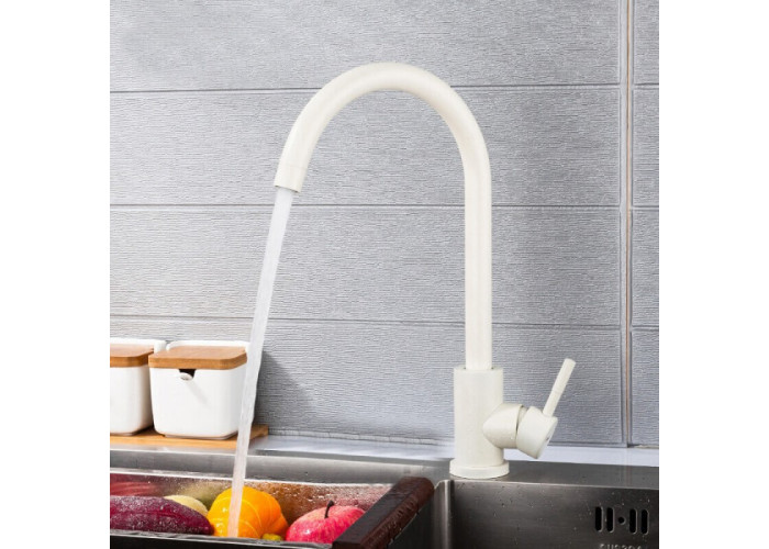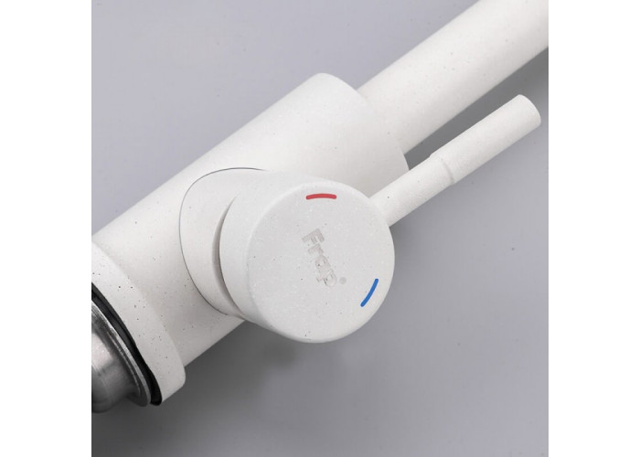 Змішувач для кухні Frap F40899-1 білий нагадує за кольором пісок, що робить прилад ще більш оригінальним. У той же час його корпус і кріплення виконаний з нержавіючої сталі, що робить його нечутливим до руйнівній дії вологи. Даний сплав не іржавіє від вогкості, тому здатний прослужити 10 і більше років.