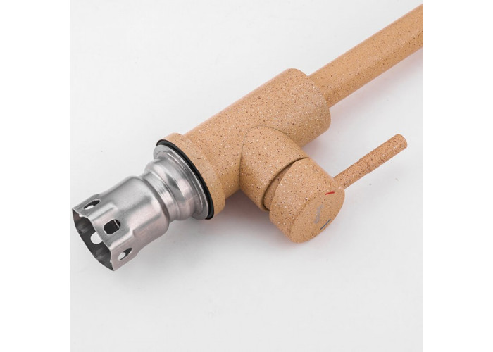 Змішувач для кухні Frap F40899-3 пісочний стане головною визначною пам'яткою будь-якого приміщення. Його оригінальний колір відразу виділяє виріб на тлі інших предметів. У той же час його, повертається в усі сторони виливши, гарантує високу функціональність. Прилад можна встановлювати на мийки з декількома раковинами. Це дозволяє одночасно виконувати різні технологічні операції при приготуванні їжі.
