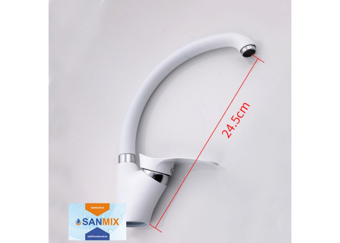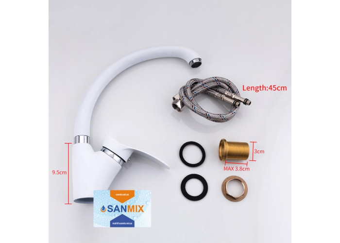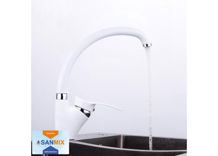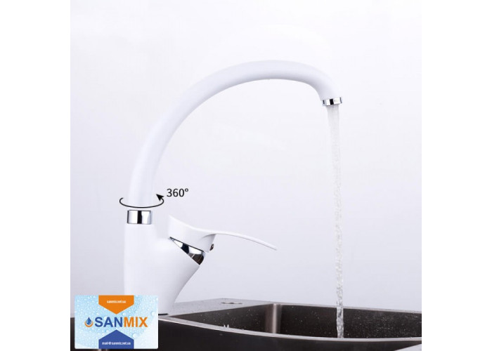 Змішувач для кухні Frap F4101-12 білий, тому буде мати гарний вигляд на темному тлі. В яскравих і насичених інтер'єрах він допоможе прибрати акцент з мийки. Він спеціально розроблений для монтажу на тонких поверхнях, тому має особливий тип кріплень. Його поворотний гусак дає можливість встановлювати в будинку раковини з декількома мийками. А важіль в змішувачі для кухні Frap F4101-12 дозволяє контролювати силу напору і температуру струменя однією рукою. У той же час виріб легко в догляді.