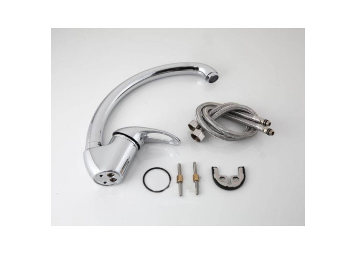 Шпилька у змішувачі для кухні Frap F4103 розрахована на те, що виріб буде встановлюватися на стільниці. Вони мають велику товщину. А поворотний виливши гарантує зручність в поводженні з приладом, дає можливість встановлювати його на мийки з декількома раковинами.