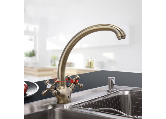 Змішувач для кухні Frap F4219-4 має бронзове покриття, що додає йому вишуканий вигляд. При цьому корпус приладу вилитий з мідного сплаву. Він відрізняється підвищеною стійкістю до ржавіння під дією води. Мідь у складі робить корпус міцним і еластичним, дозволяючи йому витримувати різкі перепади температури.