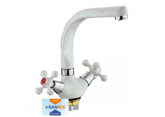 Змішувач для кухні Frap F5408-8 білий повертається навколо своєї осі. Його знімний виливши легко чиститься і замінюється на новий, що значно подовжує термін життя пристрою. А кран-букси в якості запірного механізму дають можливість максимально точно виставити температуру води. Щоб пальці не зсковзували, хрестоподібні вентилі в змішувачі для кухні Frap F5408-8 мають форму перевернутої краплі. У комплекті з ними поставляються накладки, які вказують на холодну і гарячу воду. При цьому виливши обертається на 360 градусів навколо своєї осі.