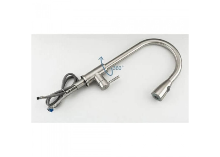 Вбудований в гусак шланг по своїй гнучкості не відрізняється від підводок, що йдуть в комплекті. Його можна зав'язати в вузол, а потім повернути в робоче положення. Від цього функціональність змішувача для кухні Frap F60899-1 анітрохи не зміниться. А сам виливши так само можна повертати навколо своєї осі на 360 градусів.
