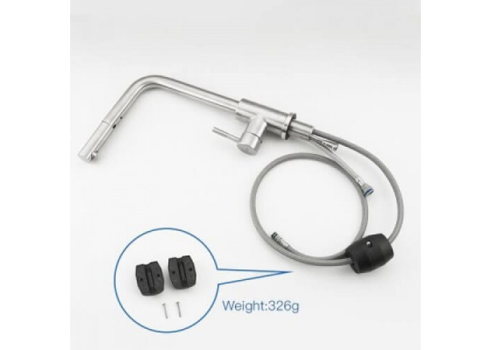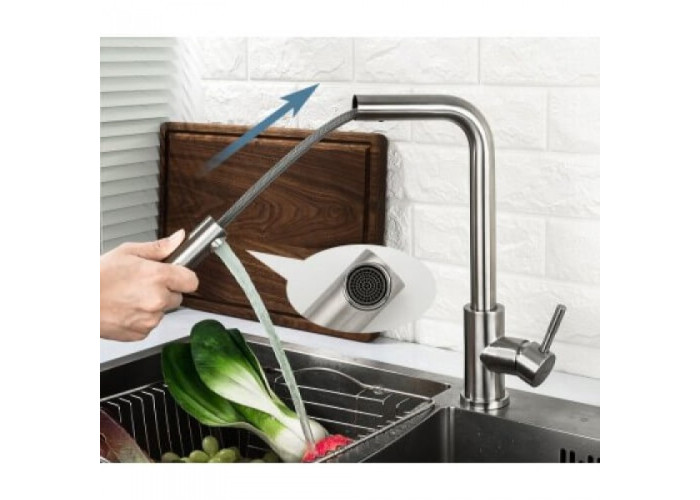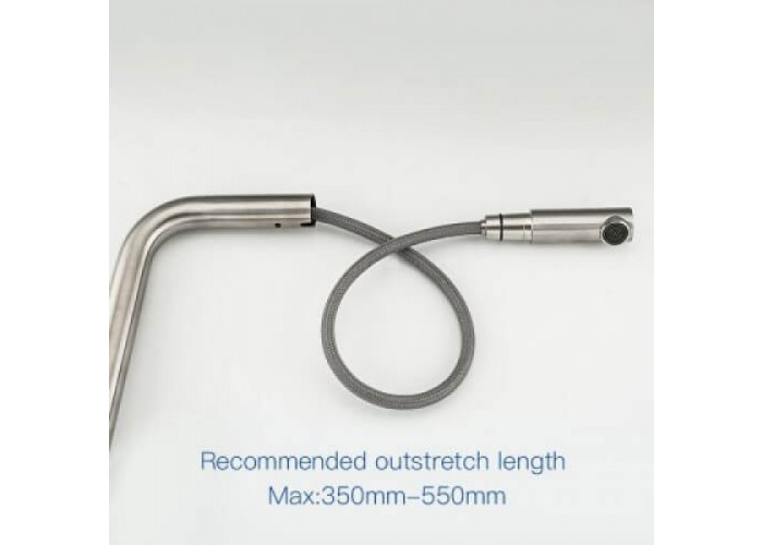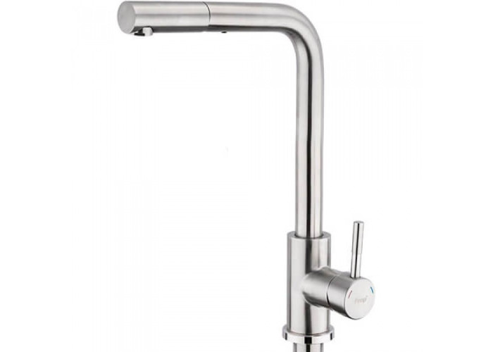 Змішувач для кухні Frap F60899 з висувним виливом призначений для зручної роботи з кухонною мийкою. Його Г-подібний гусак створює багато робочого простору. Під ним можна наповнити водою дуже високу каструлю або помити великий качан пекінської капусти. А при необхідності кінець виливу висувається.