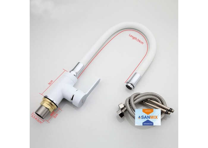 Корпус з латунного сплаву робить змішувач Frap F4041 стійким до руйнування під дією води. У той же час він забарвлений з зовні в білий колір, який добре виглядає і в світлих, і в темних інтер'єрах.