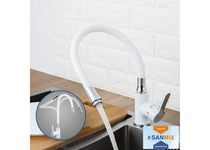 Змішувач для кухні Frap H41 F4041 з гнучким зливом з силікону дозволяє зняти всі обмеження по функціональність приладу. Завдяки такій можливість аератор легко опустити максимально низько і направити в будь-якому напрямку. При цьому прилад підходить і для мийок з декількома раковинами. Кріплення на гайку міцно фіксує виріб на тонкій поверхні.