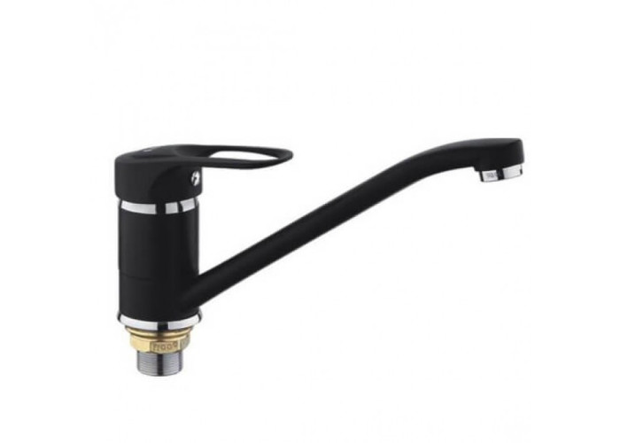 Латунний корпус змішувача для кухні Frap F4928-11 що не окислюється під дією води. Для додання йому декоративного виду зовні забарвлений в чорний. Завдяки цьому виріб виглядає строго і сучасно.