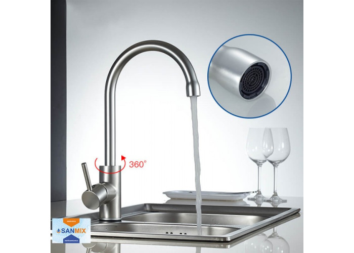 Змішувач для кухні Frap F4052 має поворотний виливши, який дає можливість встановлювати її на мийки з декількома раковин. Висота дозволяє набирати високі каструлі. А на фото видно, що корпус суцільнолитий і товстий, а не порожній.