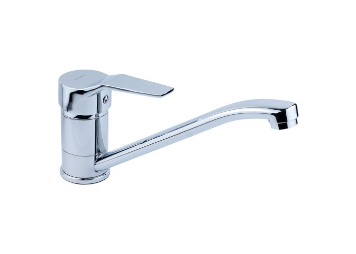 Змішувач MJ Ø40 для кухні гусак прямий 250 мм на гайці AQUATICA (MJ-1B235C). Мінімальний тиск в системі водопостачання: 0.5 бар. Максимальний тиск в системі водопостачання: 10 бар. Водневий показник води (pH): 6.5-8.5. Загальна мінералізація води: не більше 1500 г/м³. Тільки для чистої води без домішок, що містять абразиви (пісок, глину, вапно тощо). MJ-1B235C - це змішувач для кухні з прямим поворотним гусаком довжиною 250 мм і важелем злегка зігнутої форми. Регулювання температури і потоку води проводиться плавно і практично безшумно завдяки роботі керамічного картриджа. Корпус покритий хромонікелевим напиленням, яке достатньо протирати тканиною або м'якою губкою. Такий змішувач для кухні підійде для глибоких мийок. Переваги: зручне управління; захист від впливу корозії; тривала експлуатація; швидкий монтаж. Кріплення на мийку здійснюється за допомогою гайки-корони. Для підключення до водопроводу передбачений гнучкий підвід. Гарантія надається на 3 роки.