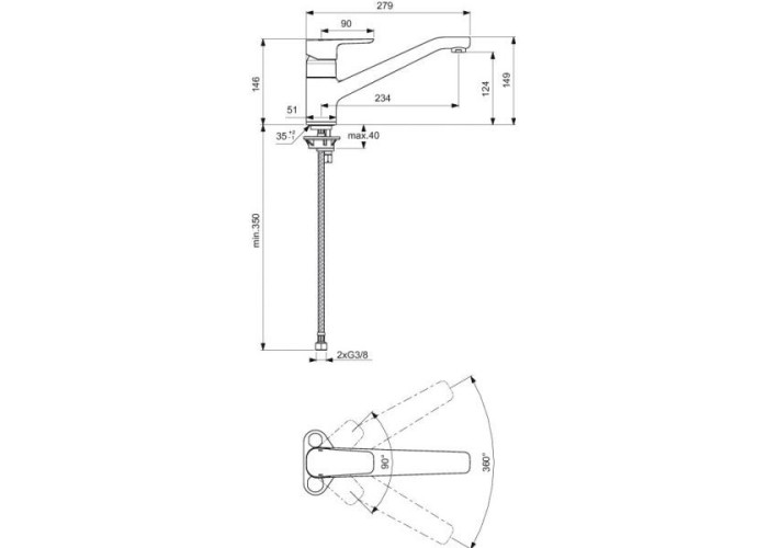 Німецький змішувач для кухні Ideal Standard Ceraplan III B0722AA – висока якість за доступною ціною! Корпус цільно литий з екологічно чистої латуні з низьким вмістом свинцю. Покритий стійким хромо-нікелевим покриттям, стійкий до подряпин і абразивним речовинам. Надається гарантія від виробника – 5 років. Змішувач укомплектований керамічним картриджем 40 мм з економ режимом і обмежувачем гарячої води (можна легко відключити від мережі), гнучка підводка 3/8 “. Висота змішувача, від поверхні мийки і до аератора, 149 мм (14,9 см) рекомендується встановлювати не глибокі мийки щоб уникнути розбризкування. Винос від центру монтажного отвору до аератора 234 мм (23,4 см) так само важливий показник який потрібно враховувати. Всі деталі змішувача взаємозамінні!