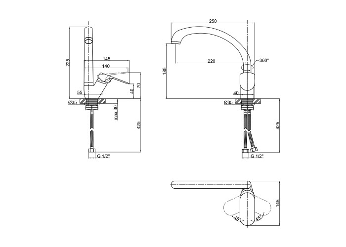 Додаткові характеристики Довжина гнучкого підводу 400 мм.