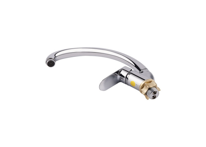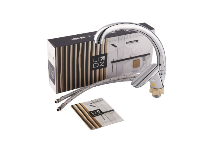 Змішувач для кухні з високим поворотним виливом Lidz (CRM) 15 36 008 03 дозволить набирати воду в високий посуд, а завдяки глянсовій блискучій поверхні виглядає естетично та доповнить будь-який інтер‘єр кімнати. Він монтується в отвір для змішувача на стільниці або на мийці врізним способом. Напір води і її температура регулюються поворотом важеля в необхідне положення. Він має нанесені маркування Х + Г води і фірмовий логотип виробника.