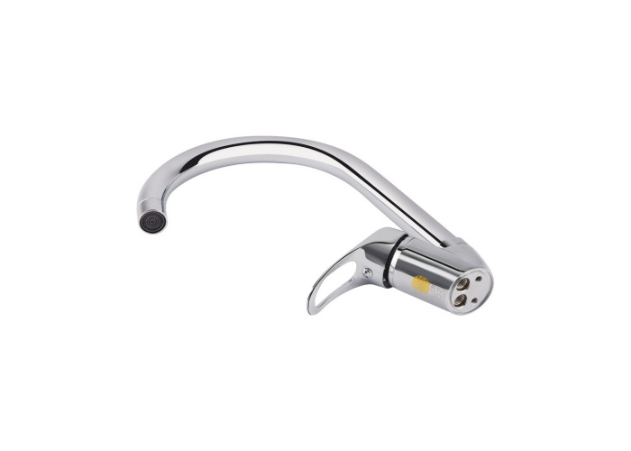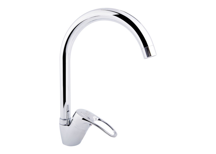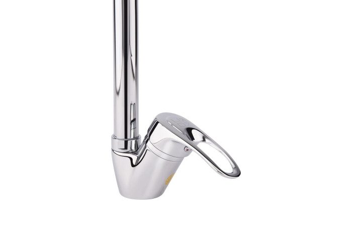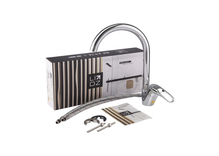 Змішувач для кухні з високим поворотним виливом Lidz (CRM) 16 37 007 08 дозволить набрати воду в високий посуд, а завдяки глянсовій блискучій поверхні виглядатиме естетично й доповнить будь-який інтер‘єр кімнати. Він монтується в отвір для змішувача на стільниці або на мийці врізним способом. Напір води і її температура регулюються поворотом важеля з отвором у потрібному напрямку. Він має нанесені маркування Х + Г води і фірмовий логотип виробника.
