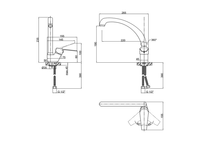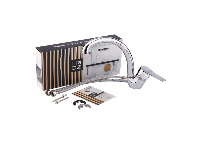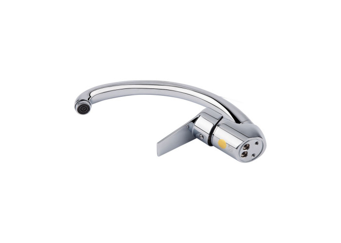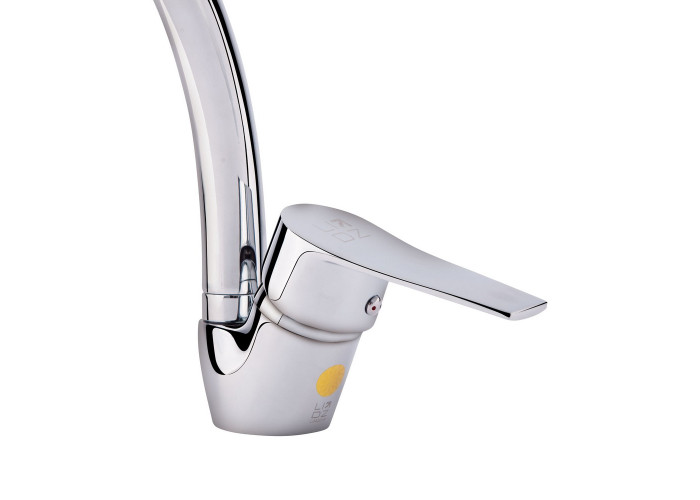 Змішувач для кухні Lidz (CRM) 20 38 007 03 завдяки глянсовій блискучій поверхні виглядатиме естетично й доповнить будь-який інтер‘єр кімнати, а завдяки високому поворотному виливу дозволить набрати воду у високий посуд. Він монтується в отвір для змішувача на стільниці або на кухонній мийці врізним способом. Напір води і її температура регулюються поворотом важеля в необхідне положення. Він має нанесені маркування Х + Г води і фірмовий логотип виробника.