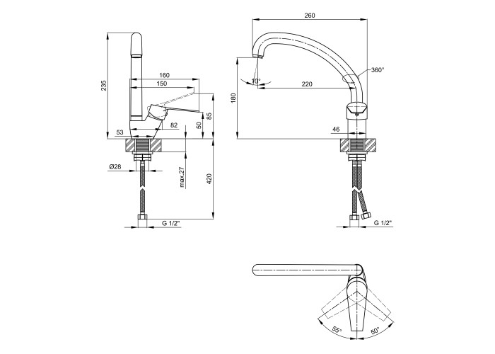 Змішувач, гнучкий підвід, кріпильні деталі.