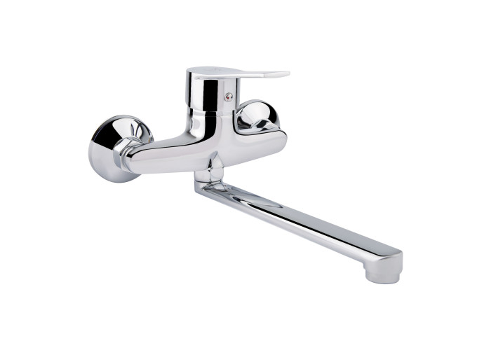 Змішувач для кухні з поворотним виливом Lidz (CRM) 40 87 009 завдяки глянсовій блискучій поверхні виглядатиме естетично й доповнить будь-який інтер‘єр кімнати. Він монтується на стіну над кухонною чашею. Круглі декоративні розетки приховають похибки установки на обробці. Напір води і її температура регулюються поворотом важеля в необхідне положення. Він має нанесені маркування Х + Г води і фірмовий логотип виробника.
