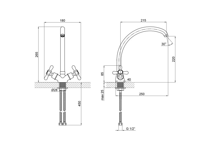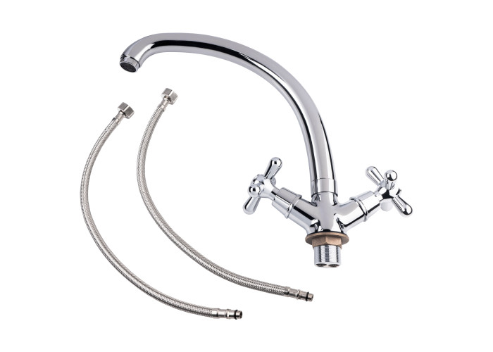 Змішувач для кухні Lidz (CRM) Dominox 15 272F-3 буде виглядати естетично і підійде під будь-який інтер‘єр кімнати завдяки глянцевій блискучій поверхні. Він виготовлений з високоякісної латуні. Виріб монтується в отвір для змішувача на стільниці або на кухонній мийці урізним способом. Напір води і її температура регулюються поворотом двох зручних вентелів у необхідне положення.