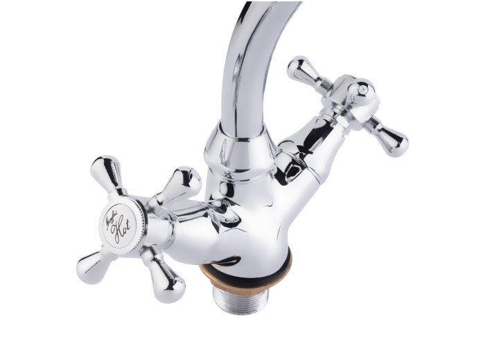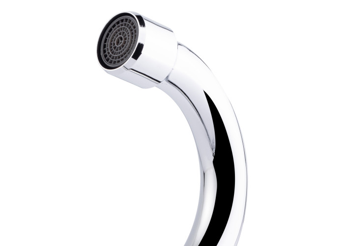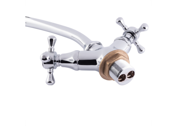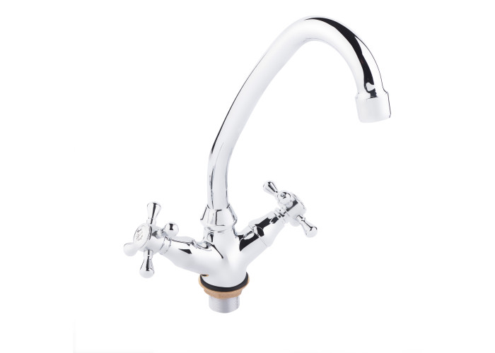 Змішувач для кухні з поворотним виливом Lidz (CRM) Mayfair 16 272F-1 виконано з міцної латуні з глянцевою блискучою поверхнею. Він монтується в отвір у кухонній мийці або в стільницю врізним способом. Подача води здійснюється завдяки повороту вентелів в необхідне положення. Підключення води відбувається за допомогою гнучкого підведення, що входить в комплектацію.