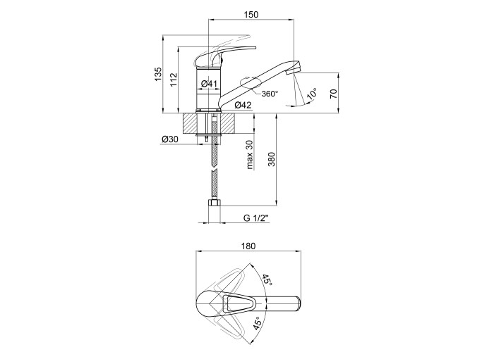 Змішувач, гнучкий підвід, кріпильні деталі.