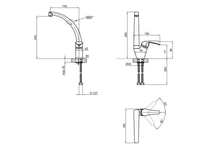 Змішувач для кухні Lidz (CRM) Smart 39 008-9 виконано з міцної латуні з глянцевою блискучою поверхнею. Він монтується в отвір у кухонній мийці або в стільницю врізним способом. Подача води здійснюється завдяки картриджу після повороту важеля в необхідне положення. Підключення води відбувається за допомогою гнучкого підведення, що входить до комплектації.