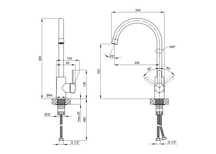 Змішувач, гнучкий підвід, кріпильні деталі.