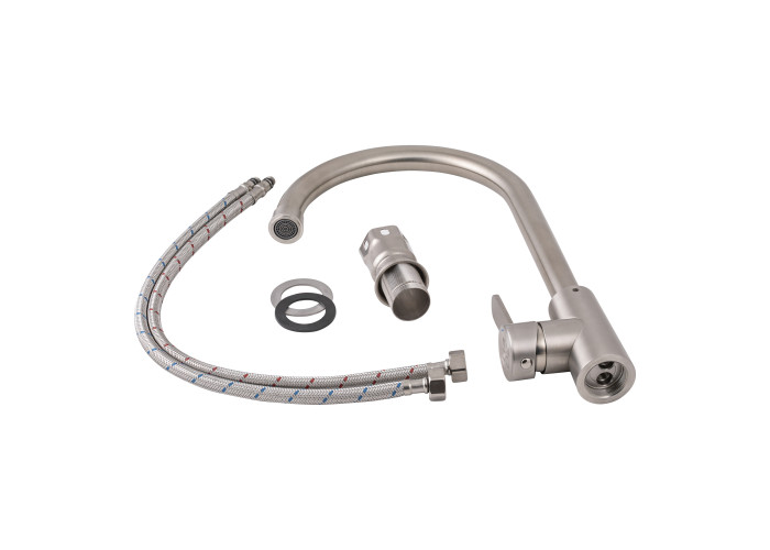 Змішувач для кухні Lidz (NKS) 11 31 014F-8 виготовлений з нержавіючої сталі. Завдяки нікельованій брашуваній поверхні має оригінальний зовнішній вигляд. Виконаний в сучасному стриманому стилі. Монтаж даного змішувача не додасть труднощів, так як здійснюється за допомогою зручної гайки.