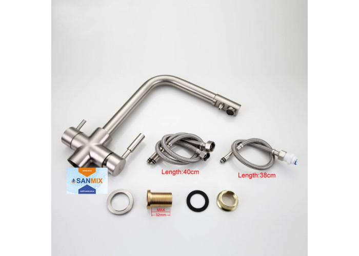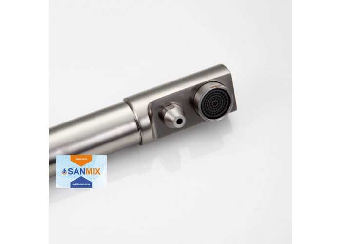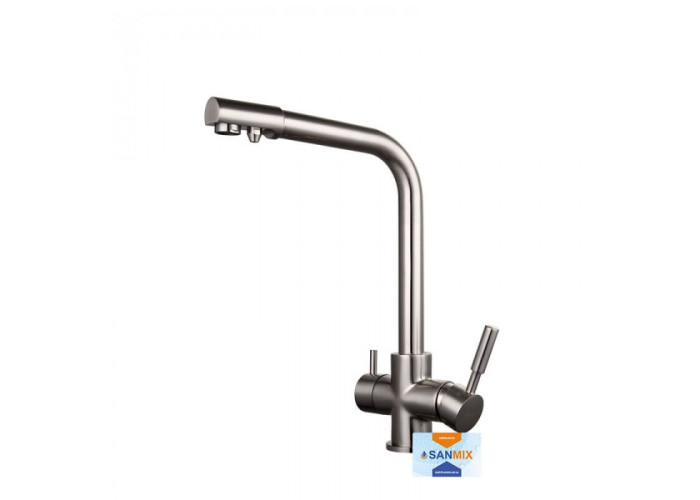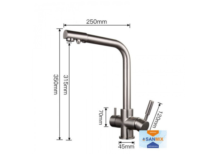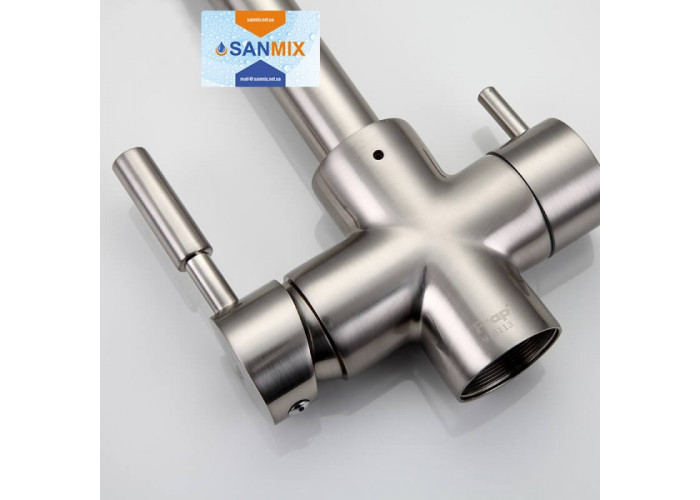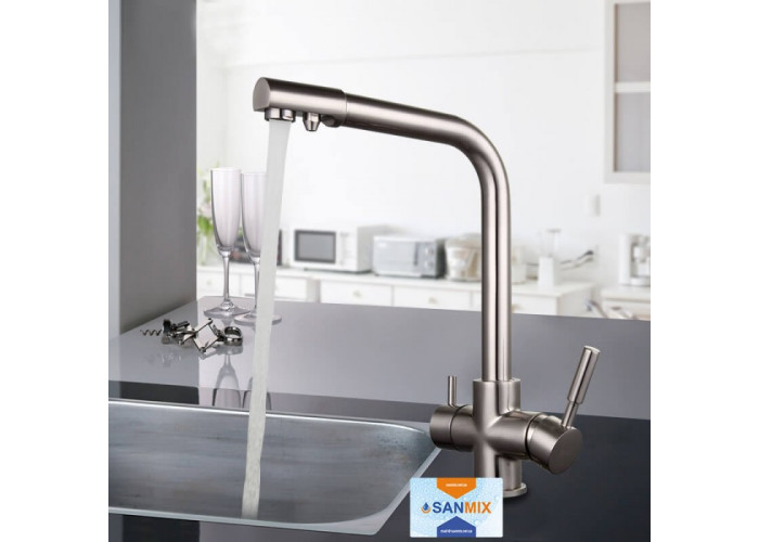Змішувач для кухні на дві води Frap H52 F4352-5 сатин має Г-подібний гусак, який обертається навколо своєї осі. Така форма не зрізає кут, тому приладом з'являється багато додаткового простору. У той же час він досить довгий, щоб під ним було комфортно працювати. А виходи для водопровідної і фільтрованої води розділені, що дозволяє контролювати включення кожного крана. Головна особливість змішувача для кухні Frap H52 F4352-5 в тому, що він встановлюється в стандартне отвір на мийці або стільниці. Завдяки Вашим виробом немає необхідності в додаткових пристроях.