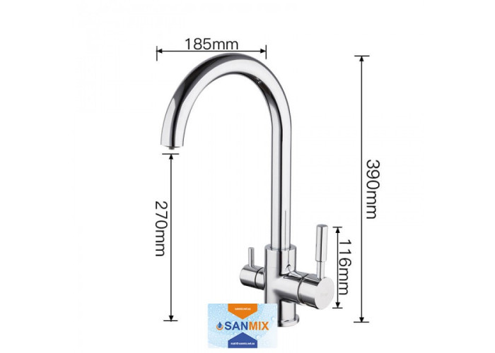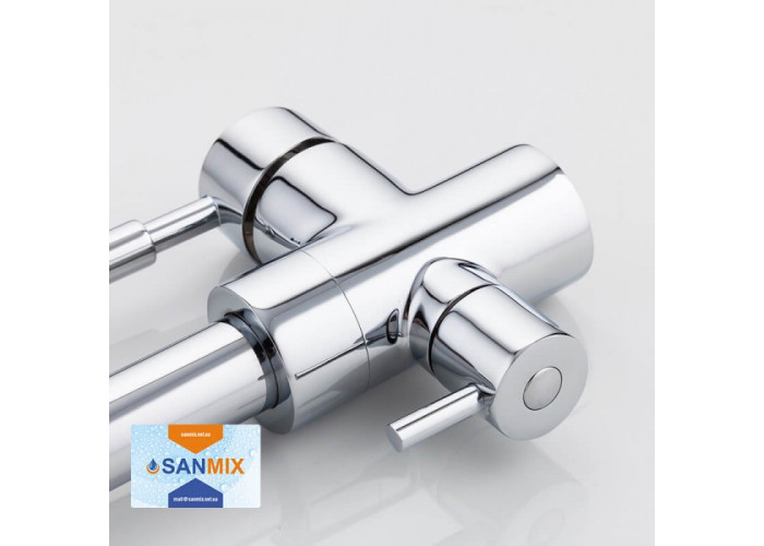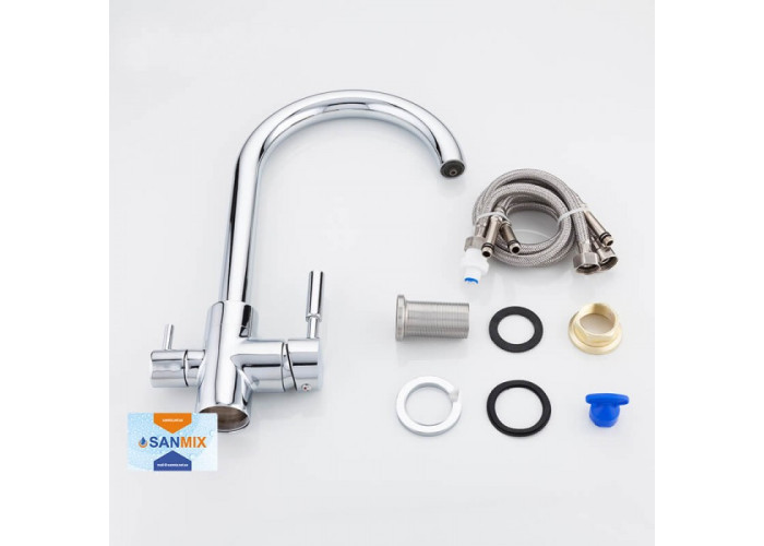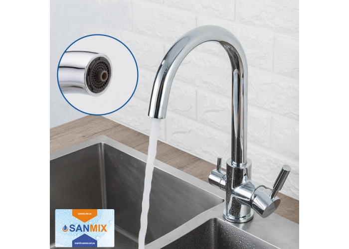 Змішувач для кухні на дві води Frap H52 F4352 латунний має оригінальне будова і класичний дизайн. У ньому подача води в виливши реалізована так, що і очищена, і водопровідна випливають з одного аератора не змішуючись. Для гігієнічності вихід на фільтровану рідина трохи видається вперед. Великим плюсом змішувача для кухні Frap F4352 є те, що він встановлюється на стандартне отвір мийки. Завдяки цьому створення водозабезпечення в будинку стане набагато простіше.
