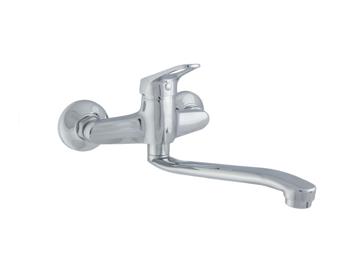 Змішувач для мийки MIXXEN Емшер оснащений іспанським картриджем Sedal з керамічними пластинами під один важіль змішування і регулювання холодної / гарячої води. У стандартну комплектацію входять – дві ексцентричні муфти для настінного монтажу, два декоративних відбивача, має поворотний вилив довжиною 225 мм, обладнаний антистатичним аератором.