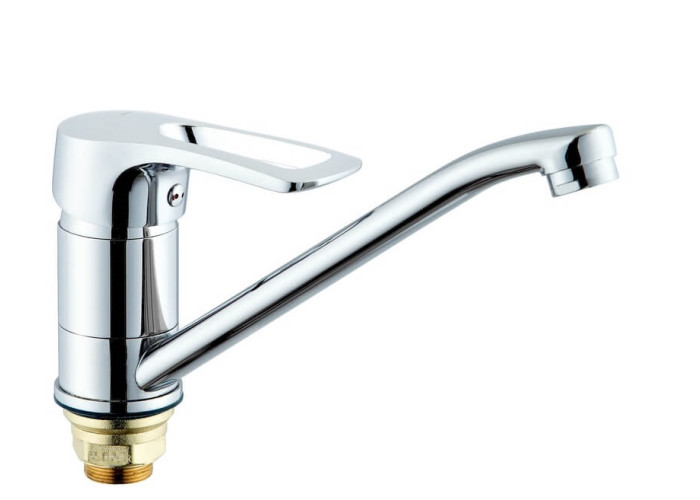 Змішувач однорукий довгий гусак для кухні WEZER. Діаметр картриджа Ø40. Кріплення – гайка. Матеріал латунь. Покриття хром. Виробник Китай. Клас економ.