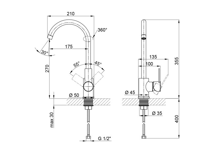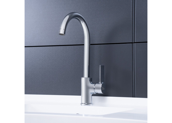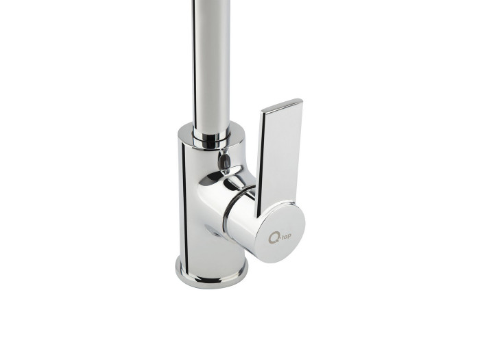 Змішувач для кухні Qtap Form CRM 007F виготовлений з високоякісної харчової латуні, яка стійка до впливу корозії, ударів і появи тріщин. Глянсове хромоване покриття не тільки підвищує довговічність змішувача, а й надає йому привабливості. Змішувач має одноважільне управління, за допомогою якого можна відрегулювати температуру і напір холодної та гарячої води. Виконаний з сучасним дизайном з високим поворотним виливом, який ідеально доповнить інтер‘єр кухні.