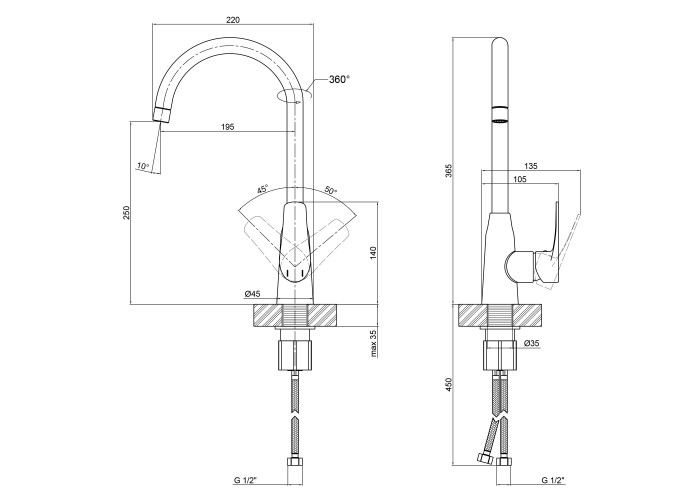 Змішувач, гнучкий підвід, кріпильні деталі.