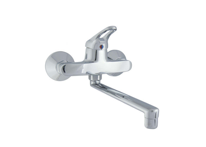 Змішувач для мийки торгової марки Vidima серії Seva-M оснащений картриджем діаметром 40 мм з керамічними пластинами під один важіль змішування і регулювання холодної – гарячої води, обладнаний поворотним виливом довжиною 200 мм з вбудованим аератором. У стандартну комплектацію входять – дві ексцентричні муфти для настінного монтажу і два декоративних відбивача. Стильний змішувач Seva-M2 оригінальної форми і дизайну – оптимальний варіант для умивальника, ним легко і зручно керувати, створить комфорт в щоденному користуванні, надійний і функціональний в експлуатації. Цільно – литий корпус змішувача виготовлений з екологічно чистого матеріалу (латунь) з декоративним покриттям в кольорі: хром.
