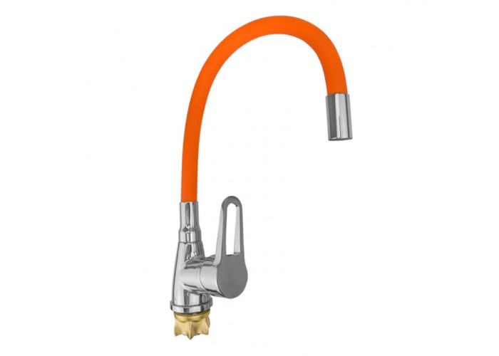Помаранчевий змішувач для кухні Wezer SOP4-R045 ORANGE підходить для всіх типів мийок, оскільки його довжини досить для розташування і низько, і високо, направити в різні чаші раковин. При цьому він міцно тримається на поверхні.